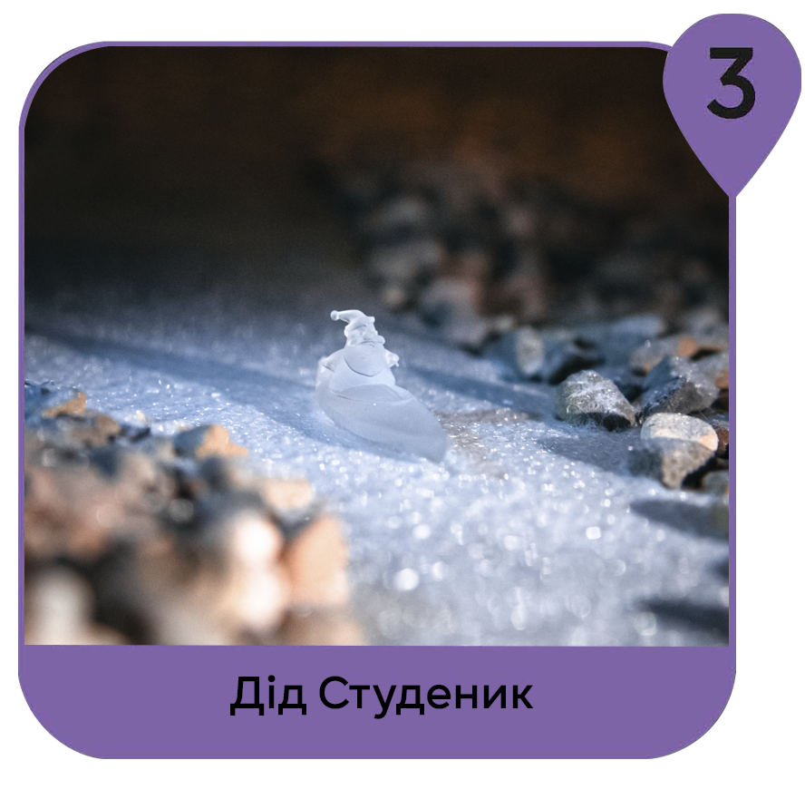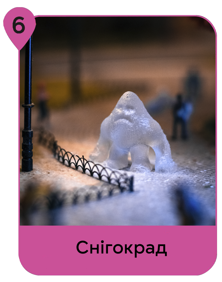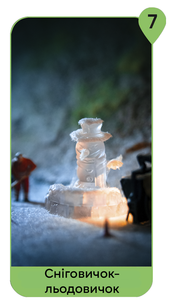 Цього разу на макеті заховались 11 льодовиків – це маленькі бешкетники, які дуже бояться тепла і вкрали собі весь сніг на макеті.